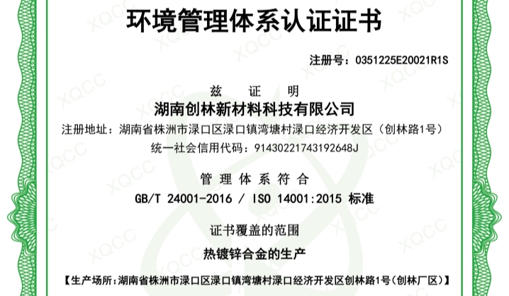 環(huán)境管理體系認(rèn)證證書